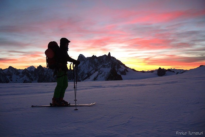 In questo inizio di stagione con temperature calde e condizioni particolarmente secche approfittiamo di una delle poche goulottes delle Alpi in condizioni per andare a grattare un po' di ghiaccio e misto con le nostre picche!Siamo io, Teto e Emrik, partiamo con la prima benna da Courmayeur e scendiamo il più rapidamente possibile con gli sci fino al rifugio del Requin. Da lì mettiamo le pelli e saliamo in direzione della brèche ovest del Col du Requin. Arrivati all'attacco esitiamo un po' tra la Sorenson-Eastman e Ice is Nice ma alla fine optiamo per quest'ultima perchè la prima ci sembrava un po' troppo "magra". Scaliamo divertendoci fino alla fine delle difficoltà, ci caliamo senza arrivare alla brèche nella speranza di pendere l'ultimo trenino in discesa dai Montenvers verso Chamonix. Manco a dirlo arriviamo con 10 minuti di ritardo e siamo costretti a una lunga "ravanata" lungo il sentiero e pendii di neve nei boschi fino al paese, dove il provvidenziale Jerome ci darà un passaggio fino a Courmayeur. Super giornata in super compagnia!In discesa verso la goulotte Salendo verso l'attaccoSui primi pediiTraverso...All right!!Prime difficoltàTeto è ottimista!Ambiente!Verso la brècheDiscesa infinita verso Chamonix